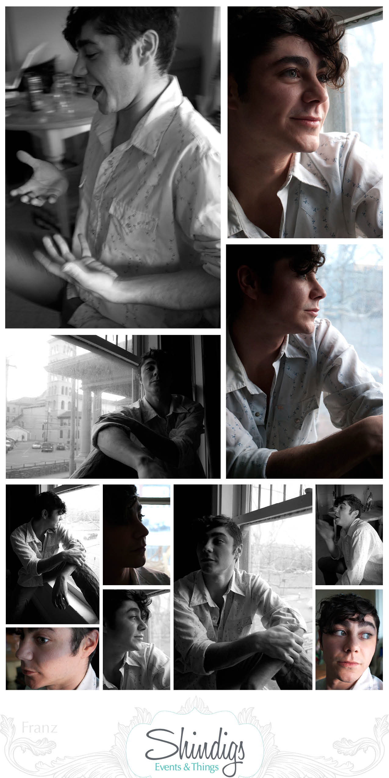 Let me introduce my good friend Franz. I have great plans for Franz to model in my several of my shoots, so it was past time to do some test shots. I wanted to familiarize myself with the shape and tones of his face. It also gave me a chance to feel out his moods and the kind of quality shots I get when he finally relaxed into himself and with me. It was a success! What we both produced was beautiful and I’ve found an absolutely gorgeous male model. Perfect old world romantic look to him and he’s sinfully charming. I’m very excited to welcome him to the Shindigs family and I can not WAIT to work with him.